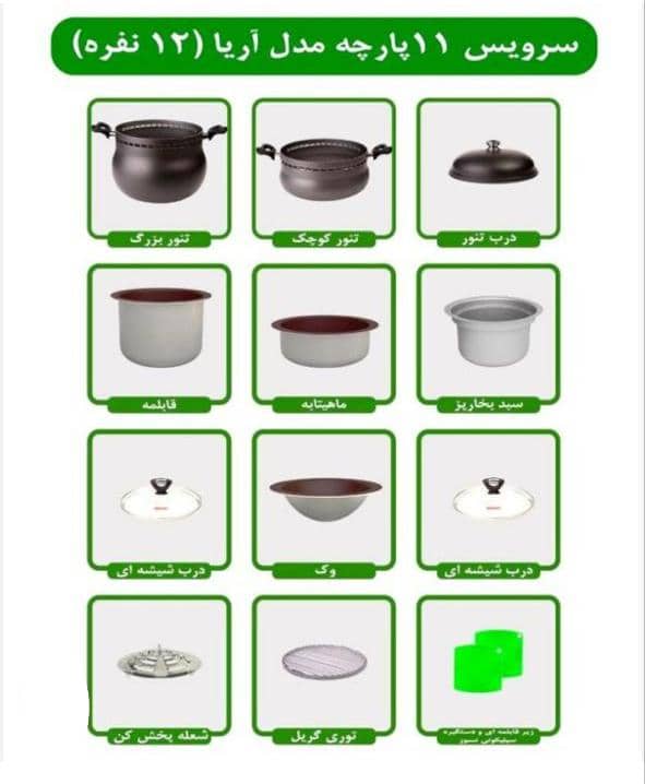 این سرویس شامل 11 پارچه متنوع است که برای پخت غذا برای 12 نفر طراحی شدهاند. با استفاده از این دستگاه، میتوانید انواع غذاها را بهصورت تنوری، بخارپز، سرخشده، گریلشده یا حتی کیکپز تهیه کنید. طراحی خاص ظروف با فناوری هارد آنادایز باعث پخش یکنواخت حرارت و حفظ ارزش غذایی مواد میشود.